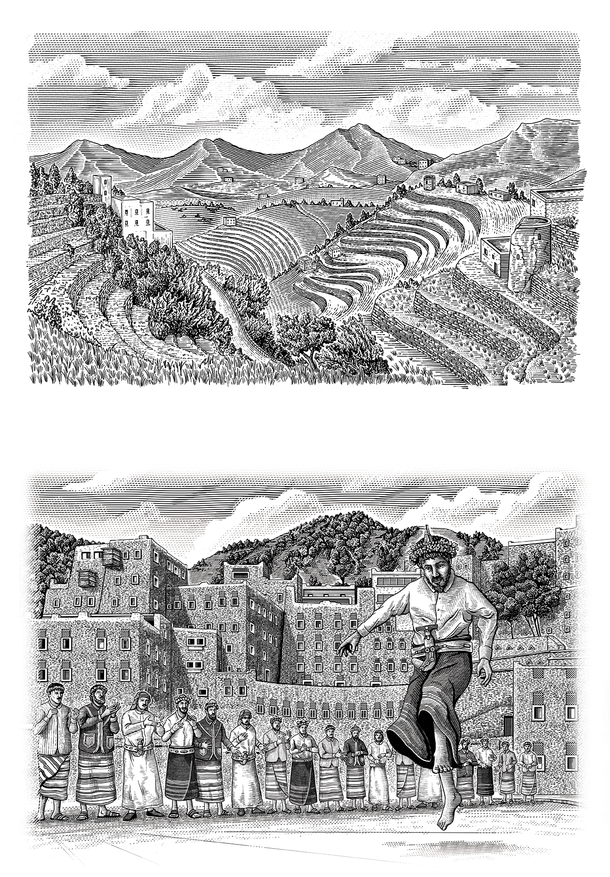 A serie of illustrations regarding Saudi Arabia traditions, landscapes, and natural elements, for the new brand identity of Aseer Investment Company, supported by Saudi Arabia’s Public Investment Fund