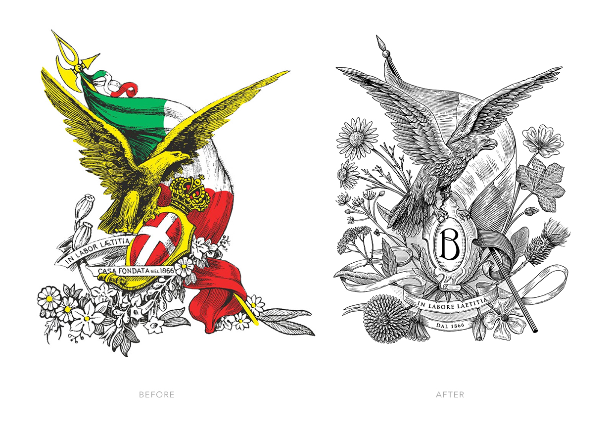 Redesign of a vintage illustration for Brisighello, an historical italian herboristal since 1866